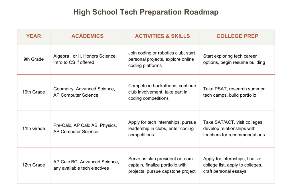 By starting freshman year and consistently building skills and experiences over four years, students set themselves up not only for college admissions success but also for a rewarding career in the ever-evolving world of technology.