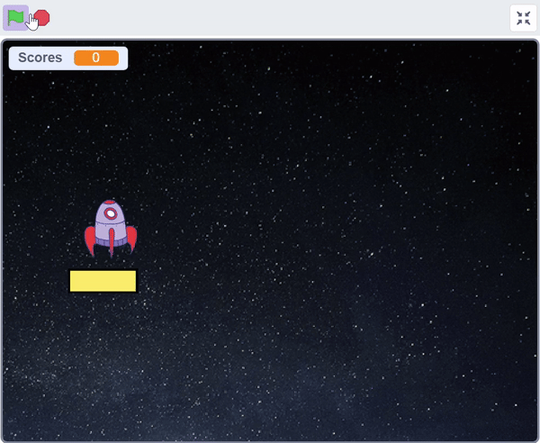 To add the rotate effect in the rocket, we can change its costume when it goes up.